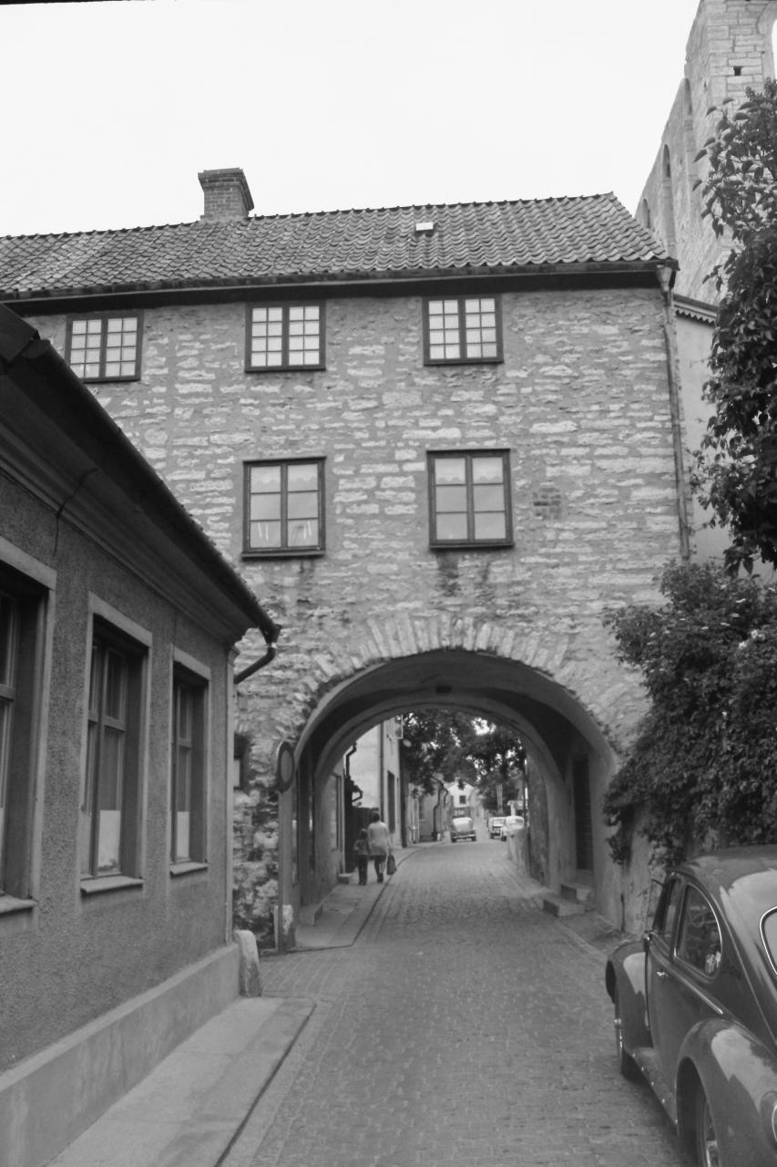 Den vinstgivande handeln i Visby lockade till sig handelsmän från framförallt Tyskland, Ryssland och Danmark och troligen också från den gotländska landsbygden. Befolkningen ökade från uppskattningsvis 3 000 personer under början av 1200-talet till omkring 12 000 under senare hälften av 1300-talet. Det blev trångt i staden och man började bygga på husen och valvhus byggdes över gator och gränder. Man ville ännu inte bygga uppe på Klinten, där korna betade under sommarhalvåret. I en stadslag från 1340 blev det tillåtet att bygga valvhus, om man ägde huset mittemot på båda sidor om gränden/gatan.