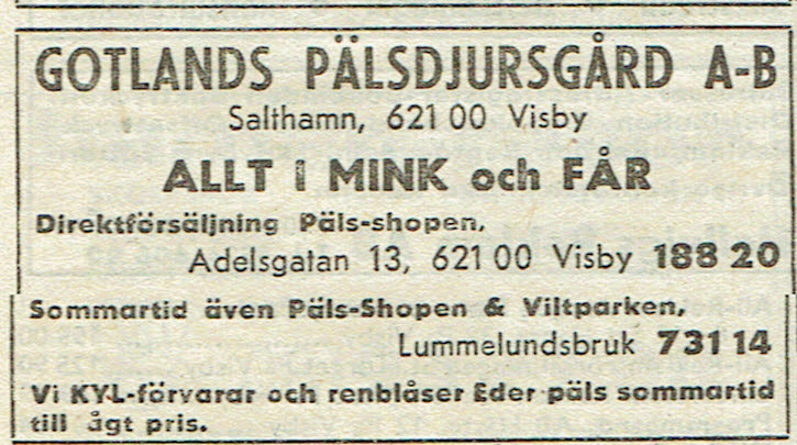 | Gotlands Pälsdjursaffär | 1970 – 1975 | Ray Raymon | Äv. Pälsshop Lummelundsbruk |