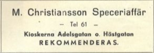 | M Christianssons specerier | 1910 – 1970 | Maria Christiansson | Från Södertorg 3 |