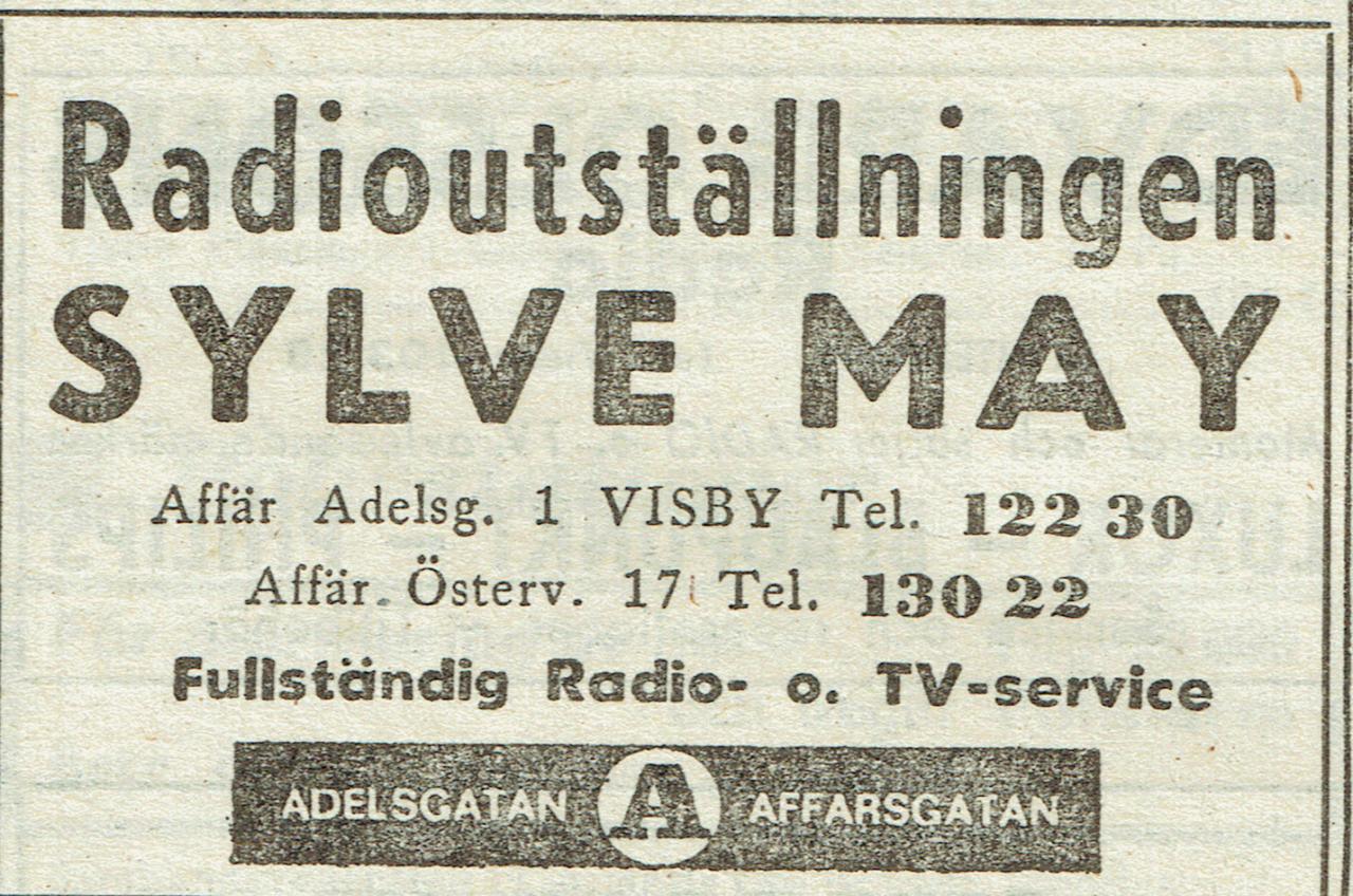 Sylve May (Sylve Arnold William May född 1914-09-29 Visby, död 1981-10-20 Eskelhem) startade sin radioaffär, Sylve Mays Radioaffär, vid Adelsgatan 4 omkring 1945. Sylve öppnade också en filial vid Södra Kyrkogatan 2A under början av 1950-talet. Filialen flyttade runt hörnet till Wallérs plats 6 omkring år 1963, där affären kallades Radioutställningen. Affären Adelsgatan 4 flyttades 1964 till Adelsgatan 1B. År 1972 köpte Radioutställningen Sylve May AB fastigheten kv Borgen 28, där affären Adelsgatan 1B alltså låg. År 1980 togs de båda affärerna över av Kenth Ahlgren tillsammans med Airi Ahlgren, möjligen för att Sylve May var sjuk. Sylve dog 1981. Kenth och Airi drev båda affärerna under namnet Radioutställningen. De köpte 1983 fastigheten kv Borgen 28 av Radioutställningen Sylve May AB och sålde den 1984 till Odd Magnusson. Kenth och Airi drev de båda affärerna fram till 1984 då verksamheten upphörde. Sylve Mays son Thomas May arbetade som säljare på Radioutställningen troligen på 1980-talet.