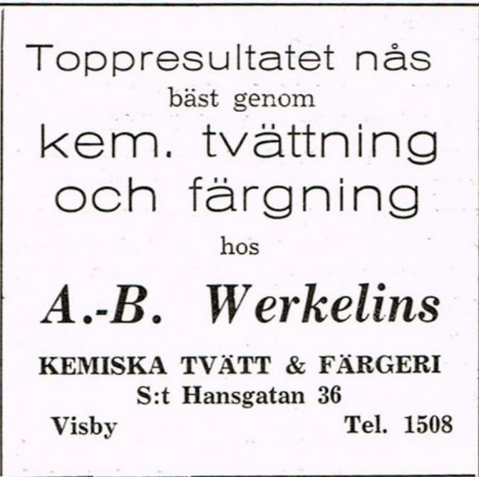 | Werkelins Kemiska Tvätt och Färgeri | 1942 – 1975 | Gunnar Werkelin | Läge Klosterbrunnsgat. 1A Även Adelsgatan 31 |