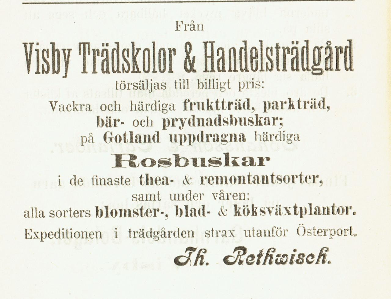 Theodor Rethwisch (f 1867) hade utbildat sig till trädgårdsmästare. Omkring 1890 hade han anlagt odlingar på ett stort obebyggt område i hörnet av Österväg och Kung Magnus väg, där han också hade sin bostad. År 1898 köpte han fastigheterna S:ta Katarina 6 och S:ta Katarina 7. Han flyttade då med sin familj till S:t Hansgatan 36, kv S:ta Katarina 6. Han lät omgående öppna upp en entré i byggnadens hörn vid S:t Hansgatan- Klosterbrunnsgatan. Förut fanns entrén mitt under valvet över S:t Hansgatan. I lokalen innanför den nya entrén öppnade han en blomsteraffär, ”Th Rethwisch Blomsterhandel”. Han var verksam som trädgårdsmästare och blomsterhandlare fram till omkring 1930, då han stängde blomsteraffären. Theodor var verksam i Arbetarföreningen och var under många år ordförande för Begravningskassan. Efter att ha stängd blomsteraffären verkade han därefter som rentier (levde på sin förmögenhet) fram till sin död omkring 1942. Maria, Theodors hustru, står som ägare till fastigheterna fram till 1945, då de säljs till fam. Werkelin. Huset S:t Hansgatan 36 har alltså fått sitt namn efter trädgårdsmästaren Th Rethwisch.