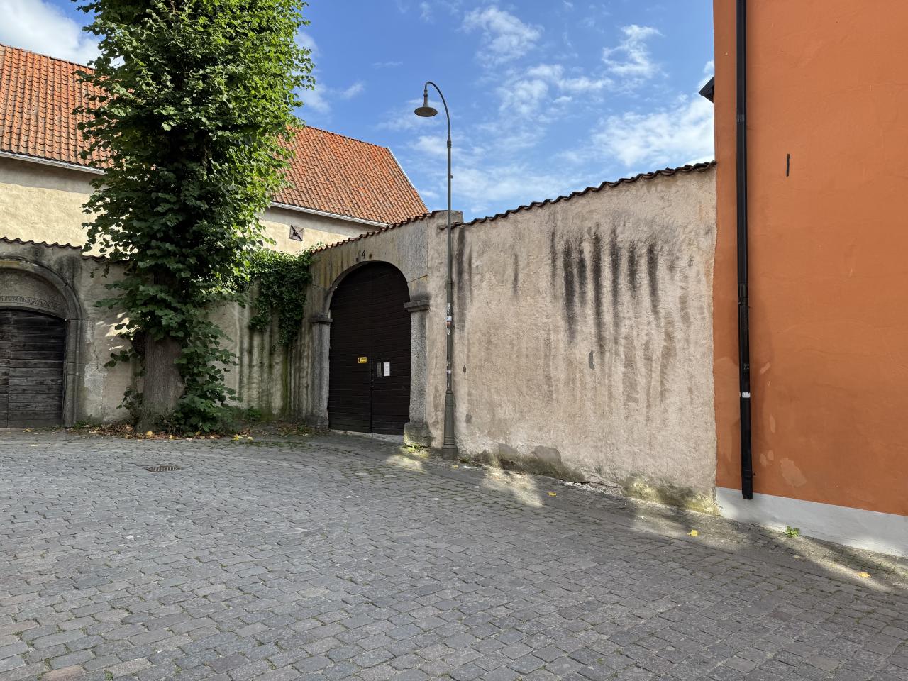 Till fastigheten hör ett gårdsutrymme med infart från S:ta Katarinagata. Gården var tidigare en stor borgargård med många byggnader och med en struktur som har levt kvar in på 1900-talet. Men genom avstyckningar och ändrade tomtgränser har delar av borggårdens byggnader kommit att ingå i andra fastigheter, med följd att gårdens storlek minskat och karaktären ändrats. Gården har fått bakgårdskaraktär med in- och utlastnings- samt sopförvaringsfunktioner. Gårdsrummet är numera belagt med gatsten och avgränsas via plank och murar. Inkörsporten från S:ta Kataringatan har sido- och överstycken av huggen kalksten och försedd med dubbla portblad.
