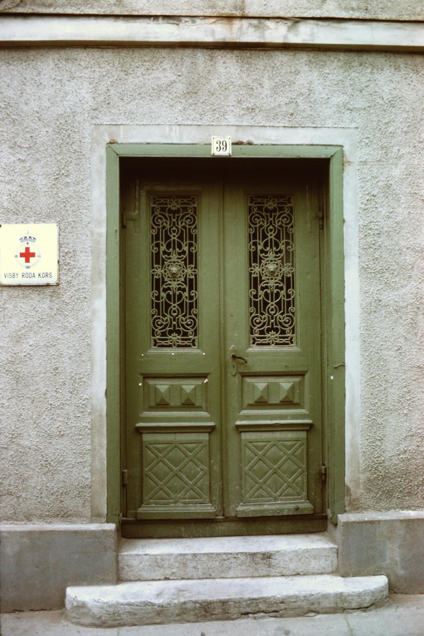 Röda Korset i Visby hade sannolikt sin verksamhet på S:t Hansgatan 39 under åren 1945 till 1985. Organisation ägde under den dessa år fastigheten Muggen 2, där byggnaden S:t Hansgatan 39 ligger. Här låg expeditionen och här bedrevs förmodligen också insamling och försäljning av kläder m.m. och annan hjälpverksamhet. Möjligen flyttade Röda Korset i Visby till Adelsgatan 4 innan flytten till Norra Hansegatan 14?
