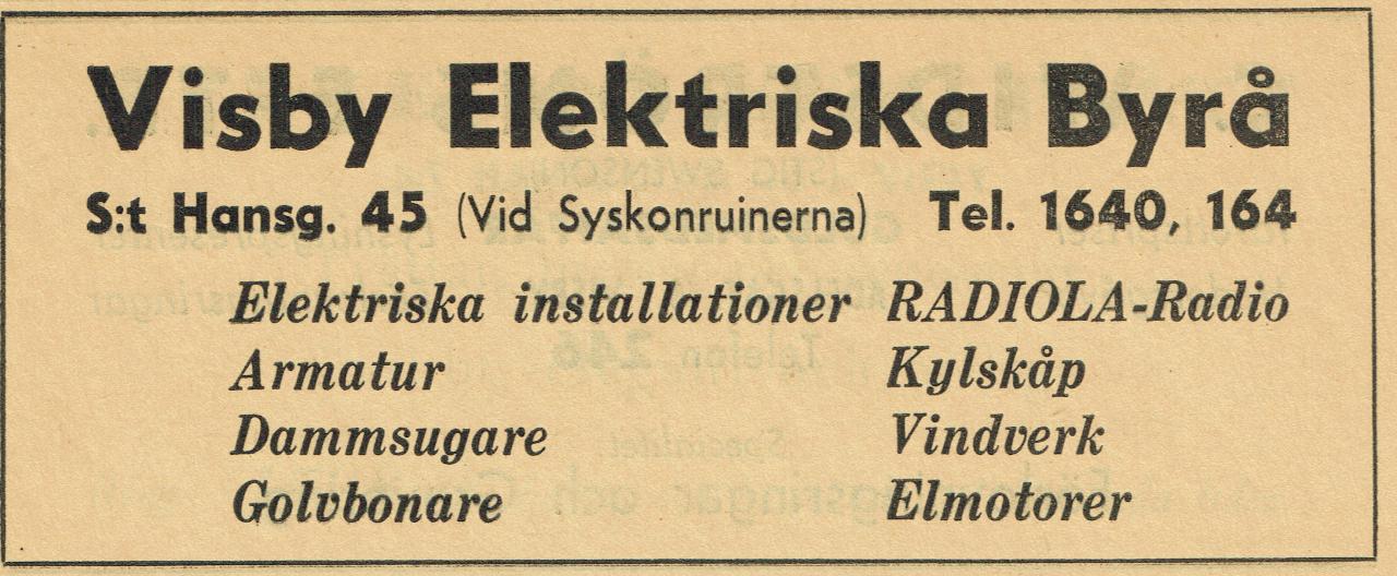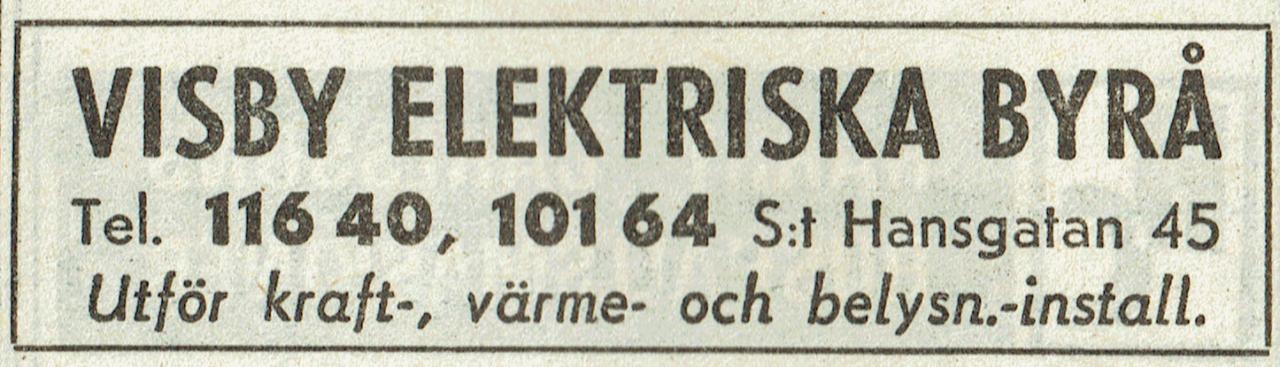 | Visby Elektriska Byrå | 1940 – 1990 | Olof Hilding Jacobsson | Från Schweitzergränd 3 |