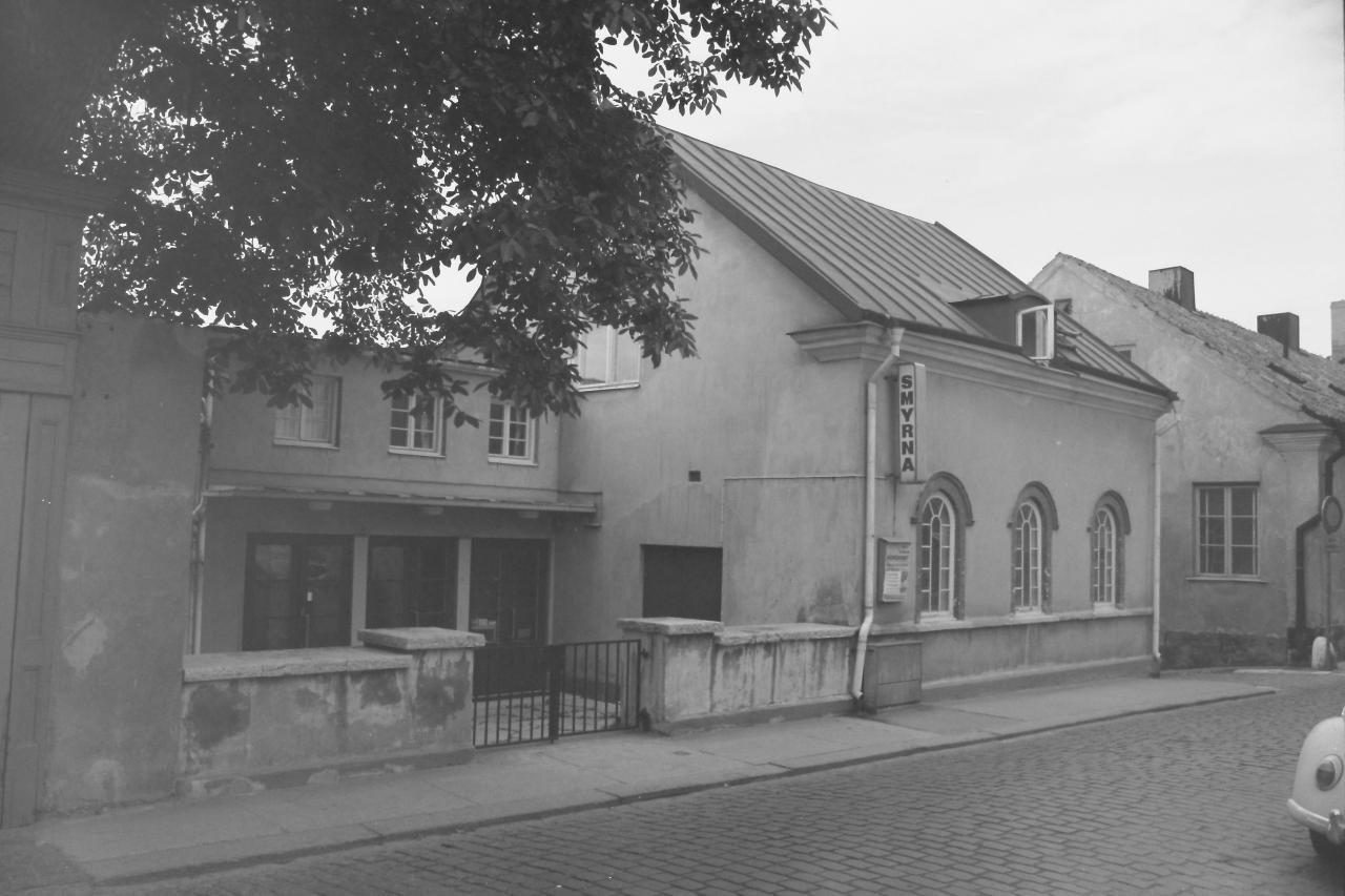 Huvudbyggnaden vid S:t Hansgatan 47 ligger mittemot Drottens kyrkoruinen på andra sidan S:t Hansgatan. Byggnaden tillhör fastigheten kv Valvet 7. Huset uppfördes av kalksten i ett plan med vind år 1880 som stall för Wedins Bryggeri. Wedins Bryggeri började brygga öl i det här kvarteret under början 1850-talet. Öltillverkningen flyttades under 1800-talet till kv Valvet 5, men kvar blev en del servicefunktioner för bryggeriet fram till början av 1900-talet. År 1928 köpte Smyrna frikyrkoförsamling fastigheten och det ursprungliga stallet blev Smyrnas samlingssal. Smyrna församling fanns kvar fram till slutet av 1980-talet. Sedan 1995 bryggs det åter öl i kvarteret nu av Gotlands Bryggeri.