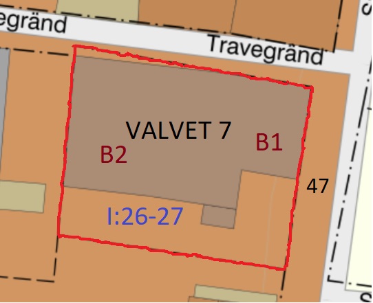 Nuvarande fastigheten Valvet 7 omfattar huvudbyggnaden (B1) uppförd som stallbyggnad 1880 placerad utefter S:t Hansgatan. Till fastigheten hör också tillbyggnaden (B2) uppförd 1936 som församlingshus för Smyrna församling.