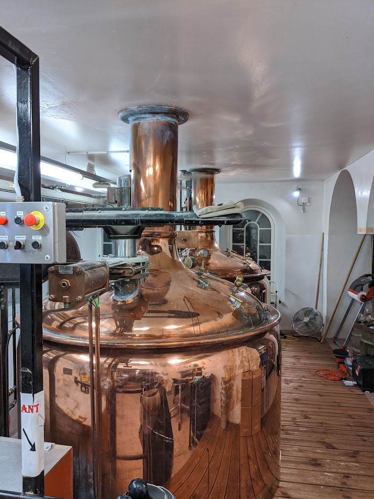 De två kopparpannorna är hjärtat i Gotlands Bryggeri. De består invändigt av av rostfri behållare. Kopparhöljet är endast för prydnad. Den ena pannan är silkar och whirlpool och den andra är mäsk- och kokpanna.