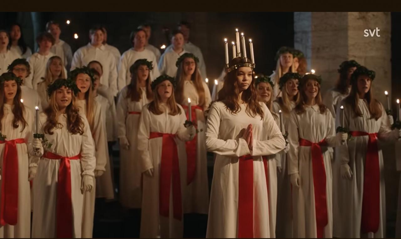 Årets luciamorgon den 13 december 2025 sände SVT från Visby. Framförandet blev mycket hyllat i medier och press, inte minst för att inslaget av traditionella sånger var stort. Några av sångerna sjöngs dessutom på gutamål som uppskattades högt av många gotlänningar. Luciatåget uppträdde, med Salma Larsson som Lucia, i S:t Nikolai kyrkoruin med sång under ledning av Alma Emilsson, körledare för Sankta Maria ungdomskör. Hon var också körledare för Sankta Marias barnkör som framförde flera julsånger under bar himmel på Rådstuguplan. Ytterligare två körer framträdde i kyrkoruinen, Gotlands gosskör under ledning av Britta Backlund Rödland och Voices of Hope underledning av Linn Smitterberg. Folksångerskan Julia Westberg sjöng ”Gläns yvar sjöi u strand” och Gotlands blåsarkvintett spelade bland annat ”Mössens julafton”. Ut över Visby takåsar ljöd ”Sankta Lucia” från Kalle Ljungholms flygelhorn, när han spelade från utsiktsplattformen på domkyrkans västtorn. Lyssna och titta (YouTube) på det mycket uppskattade framträdandet från luciamorgonen.
